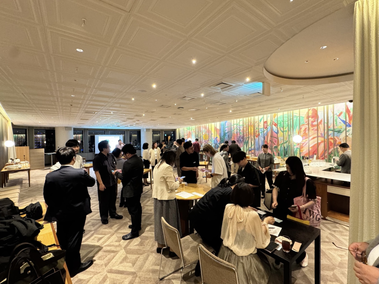 昨年は虎ノ門ヒルズのラウンジを貸し切り、回転寿司を呼んで楽しみました。今年は趣向を変えて、六本木ヒルズクラブのラウンジで立食形式のパーティプランとしました。さらに今年は特別ゲストとして、オープンソースの世界でも幅広く活動されている駿河台大学教授の八田真行さんと、femto General Partnerでスタートアップ支援の第一人者である磯崎哲也さんをお招きしました。お二人からのお話も加わり、会はより一層にぎやかで刺激的な場となりました。