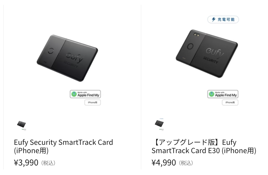 さて、家にあるのに探しまくるというような間抜けなことはもうしたくない、ということで、当社の30周年記念アイテムとして配布させていただいたAirTagのカード型というようなものが各社から発売されているので、比較検討してAnker社のeufy E30を購入しました。